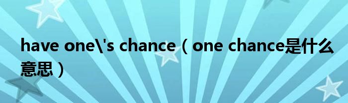 以上就是【have one's chance,one chance是什么意思】相关内容。