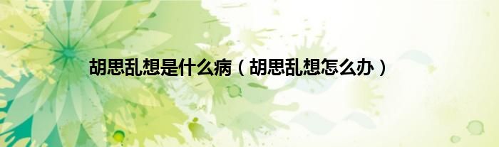 大家好,小问来为大家解答以上问题。胡思乱想是什么病,胡思乱想怎么办这个很多人还不知道,现在让我们一起来看看吧!