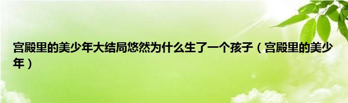 大家好,小问来为大家解答以上问题。宫殿里的美少年大结局悠然为什么生了一个孩子,宫殿里的美少年这个很多人还不知道,现在让我们一起来看看吧!