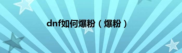 大家好,小问来为大家解答以上问题。dnf如何爆粉,爆粉这个很多人还不知道,现在让我们一起来看看吧!
