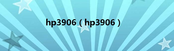 大家好,小问来为大家解答以上问题。hp3906,hp3906这个很多人还不知道,现在让我们一起来看看吧!