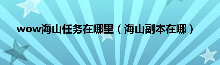大家好,小问来为大家解答以上问题。wow海山任务在哪里,海山副本在哪这个很多人还不知道,现在让我们一起来看看吧!