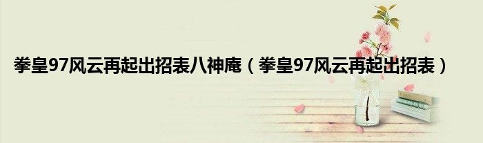 大家好,小问来为大家解答以上问题。拳皇97风云再起出招表八神庵,拳皇97风云再起出招表这个很多人还不知道,现在让我们一起来看看吧!