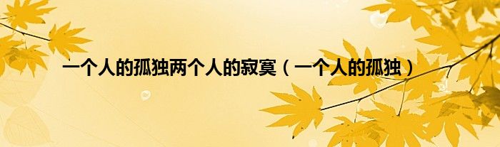 以上就是【一个人的孤独两个人的寂寞,一个人的孤独】相关内容。