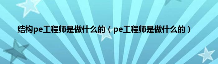 以上就是【结构pe工程师是做什么的,pe工程师是做什么的】相关内容。