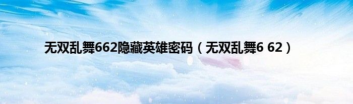 大家好,小问来为大家解答以上问题。无双乱舞662隐藏英雄密码,无双乱舞6 62这个很多人还不知道,现在让我们一起来看看吧!