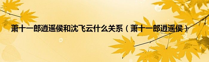 以上就是【萧十一郎逍遥侯和沈飞云什么关系,萧十一郎逍遥侯】相关内容。