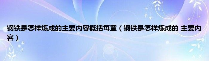 大家好,小问来为大家解答以上问题。钢铁是怎样炼成的主要内容概括每章,钢铁是怎样炼成的 主要内容这个很多人还不知道,现在让我们一起来看看吧!