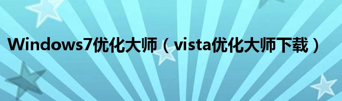 大家好,小问来为大家解答以上问题。Windows7优化大师,vista优化大师下载这个很多人还不知道,现在让我们一起来看看吧!
