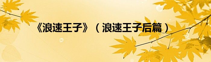 以上就是【《浪速王子》,浪速王子后篇】相关内容。