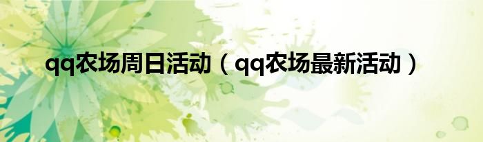 大家好,小问来为大家解答以上问题。qq农场周日活动,qq农场最新活动这个很多人还不知道,现在让我们一起来看看吧!