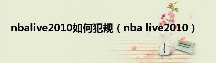 以上就是【nbalive2010如何犯规,nba live2010】相关内容。