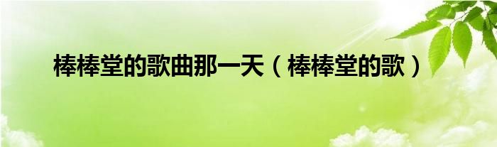 以上就是【棒棒堂的歌曲那一天,棒棒堂的歌】相关内容。
