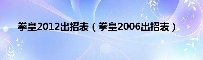 大家好,小问来为大家解答以上问题。拳皇2012出招表,拳皇2006出招表这个很多人还不知道,现在让我们一起来看看吧!