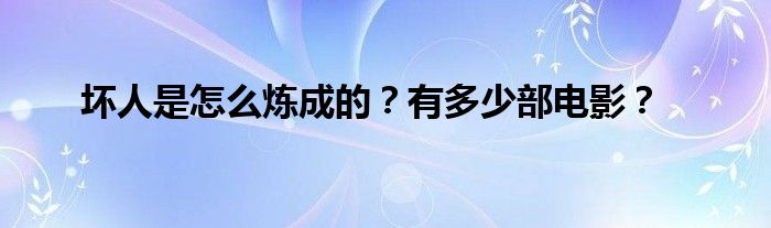 以上就是【坏人是怎么炼成的?有多少部电影?】相关内容。