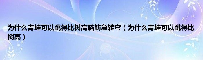大家好,小问来为大家解答以上问题。为什么青蛙可以跳得比树高脑筋急转弯,为什么青蛙可以跳得比树高这个很多人还不知道,现在让我们一起来看看吧!