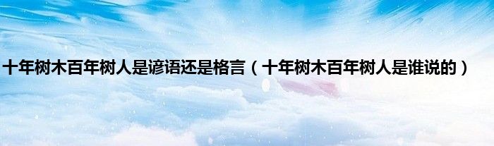 大家好,小问来为大家解答以上问题。十年树木百年树人是谚语还是格言,十年树木百年树人是谁说的这个很多人还不知道,现在让我们一起来看看吧!