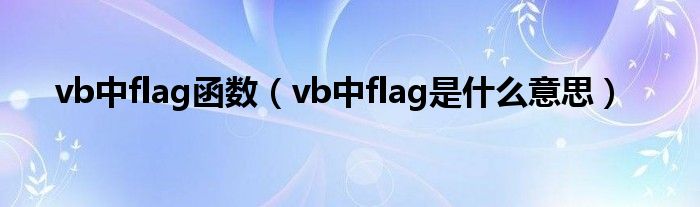 以上就是【vb中flag函数,vb中flag是什么意思】相关内容。