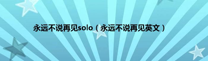 大家好,小问来为大家解答以上问题。永远不说再见solo,永远不说再见英文这个很多人还不知道,现在让我们一起来看看吧!