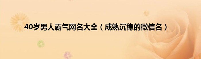 大家好,综合小编来为大家讲解下。40岁男人霸气网名大全,成熟沉稳的微信名这个很多人还不知道,现在让我们一起来看看吧!