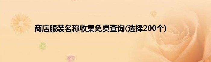 本文商店服装名称收集免费查询(选择200个)到此分享完毕,希望对大家有所帮助。