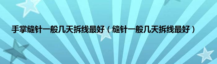 本文,手掌缝针一般几天拆线最好,缝针一般几天拆线最好到此就分享完毕,希望对大家有所帮助。