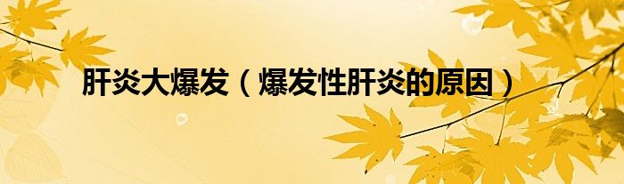 大家好,肝炎大爆发,爆发性肝炎的原因很多人还不知道,现在让我们一起来看看吧!