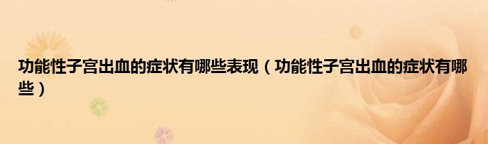 本文,功能性子宫出血的症状有哪些表现,功能性子宫出血的症状有哪些到此就分享完毕,希望对大家有所帮助。
