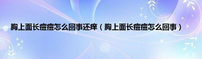 大家好,胸上面长痘痘怎么回事还痒,胸上面长痘痘怎么回事很多人还不知道,现在让我们一起来看看吧!