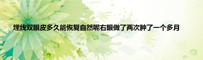 本文,埋线双眼皮多久能恢复自然呢右眼做了两次肿了一个多月到此就分享完毕,希望对大家有所帮助。