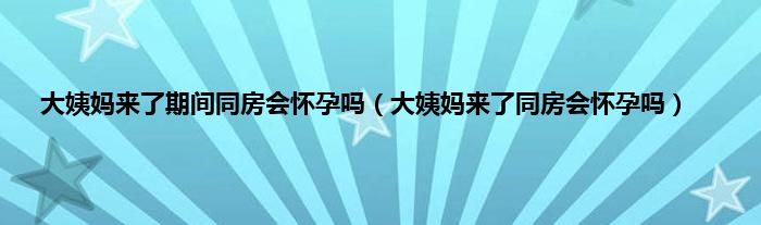 本文,大姨妈来了期间同房会怀孕吗,大姨妈来了同房会怀孕吗到此就分享完毕,希望对大家有所帮助。