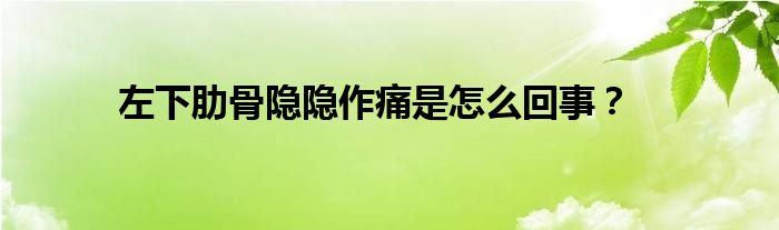 本文,左下肋骨隐隐作痛是怎么回事?到此就分享完毕,希望对大家有所帮助。