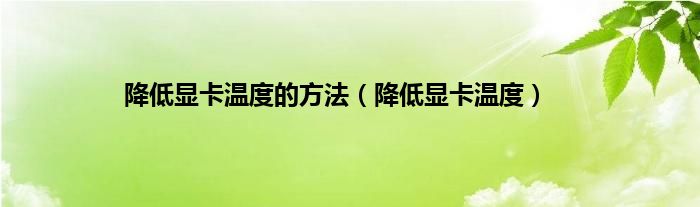 以上就是【降低显卡温度的方法,降低显卡温度】相关内容。