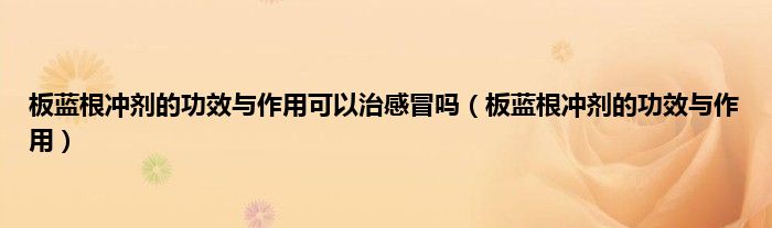 本文,板蓝根冲剂的功效与作用可以治感冒吗,板蓝根冲剂的功效与作用到此就分享完毕,希望对大家有所帮助。