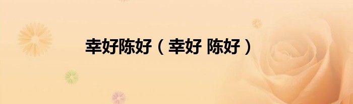 大家好,小问来为大家解答以上问题。幸好陈好,幸好 陈好这个很多人还不知道,现在让我们一起来看看吧!