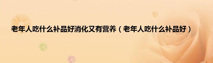 本文,老年人吃什么补品好消化又有营养,老年人吃什么补品好到此就分享完毕,希望对大家有所帮助。