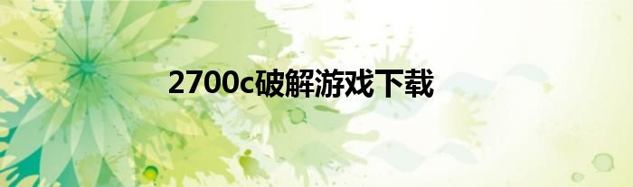 大家好,小问来为大家解答以上问题。2700c破解游戏下载这个很多人还不知道,现在让我们一起来看看吧!