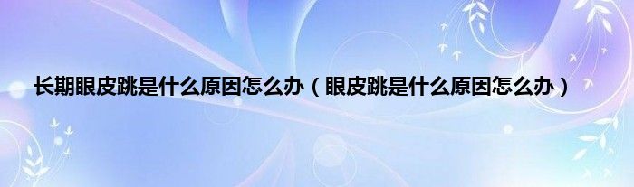 本文,长期眼皮跳是什么原因怎么办,眼皮跳是什么原因怎么办到此就分享完毕,希望对大家有所帮助。