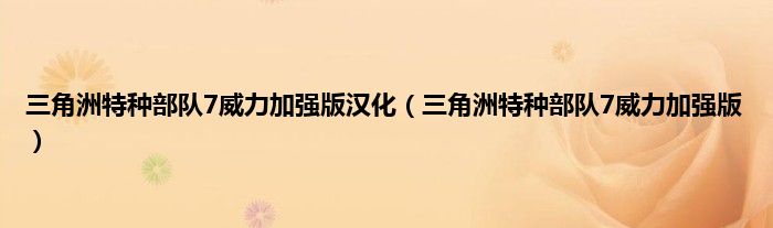 以上就是【三角洲特种部队7威力加强版汉化,三角洲特种部队7威力加强版】相关内容。