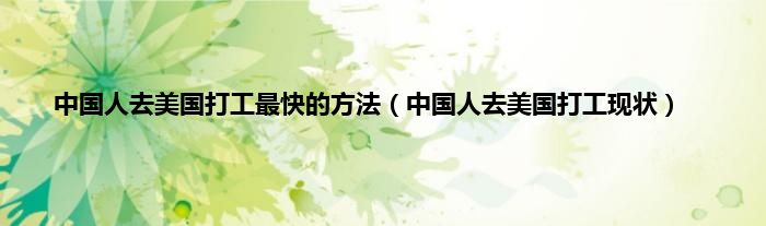 以上就是【中国人去美国打工最快的方法,中国人去美国打工现状】相关内容。