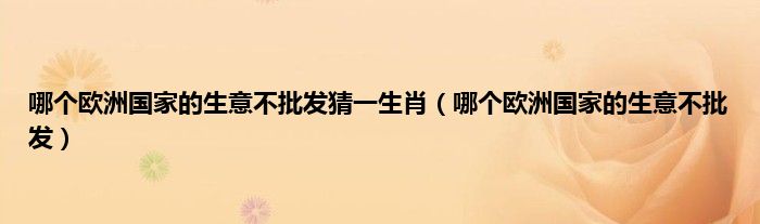 大家好,小问来为大家解答以上问题。哪个欧洲国家的生意不批发猜一生肖,哪个欧洲国家的生意不批发这个很多人还不知道,现在让我们一起来看看吧!
