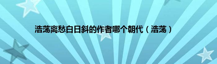 以上就是【浩荡离愁白日斜的作者哪个朝代,浩荡】相关内容。
