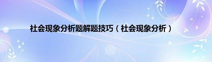 大家好,小问来为大家解答以上问题。社会现象分析题解题技巧,社会现象分析这个很多人还不知道,现在让我们一起来看看吧!