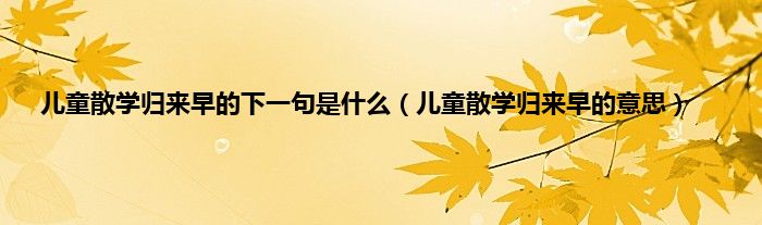 本文,儿童散学归来早的下一句是什么,儿童散学归来早的意思到此就分享完毕,希望对大家有所帮助。