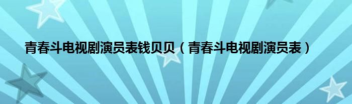 本文,青春斗电视剧演员表钱贝贝,青春斗电视剧演员表到此就分享完毕,希望对大家有所帮助。