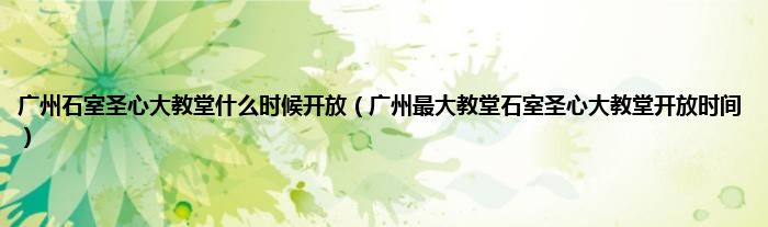 最佳答案大家好,广州石室圣心大教堂什么时候开放,广州最大教堂石室圣心大教堂开放时间很多人还不知道,现在让我们一起来看看吧!1、 广州石狮圣心大教堂位于广州市中心一德路。圣心大教堂于1863年6月18日正式举行奠基仪式,因此得名圣心大教堂。历时25年建成,是广州天主教教区最宏伟、最具特色的大教堂。...